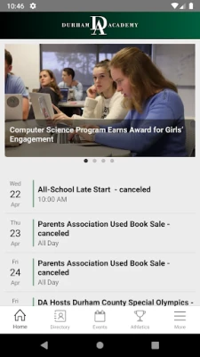 Durham Academy is an independent pre-k through grade 12 day school in Durham, North Carolina. With the Durham Academy app, parents, students and faculty members can access important school information on the go.