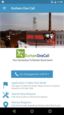 Service in the City or County of Durham, North Carolina, is now just a touch away with the introduction of the Durham One Call smart phone app. With just one touch, you can now find the latest information and services offered by the City and County. Learn about or request services such as waste collection, recycling, potholes, street repairs, litter, unsightly properties, water and stormwater services. Use this smartphone app or call 919-560-1200 to launch a service request that will connect you with the appropriate department.