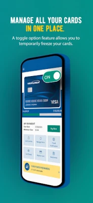 Lock or unlock your lost or misplaced debit card or credit card, redeem rewards, and take control of your spending by setting restrictions on where and how your card is used, including by merchant type, transaction type, or spending limits.