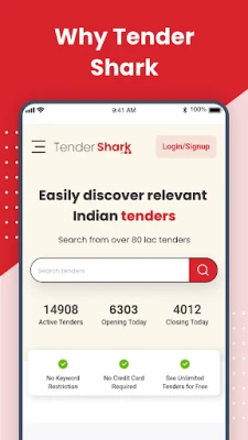 Discover India's vast tender opportunities with TenderShark, the nation's leading app for government tenders.